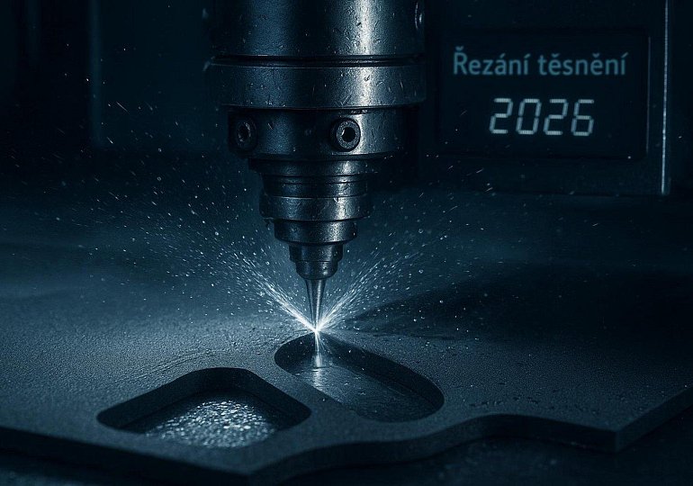 Dnes už nestačí jen prodávat standardní katalogové díly. Špičkový výrobce by měl umět zakázkovou výrobu. Digitální CNC plotry umožňují vyřezávat plochá těsnění jakéhokoli tvaru bez nutnosti investovat do drahých nástrojů. U silnějších materiálů (až do 50 mm) je nutné použití vodního paprsku, který zaručí čistý řez bez tepelného poškození materiálu.