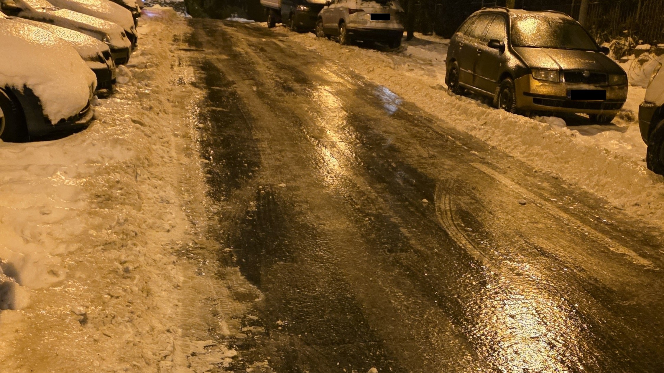 Mezitím jsem sledoval dění kolem. Naše ulice ústí do mírného, asi padesátimetrového stoupání na hlavní silnici. Normálně bezvýznamný kopec. Dnes nepřekonatelná překážka. Jedno auto za druhým se snažilo vyjet, kola se točila naprázdno, auta klouzala do stran a řidiči to po pár metrech vzdávali.